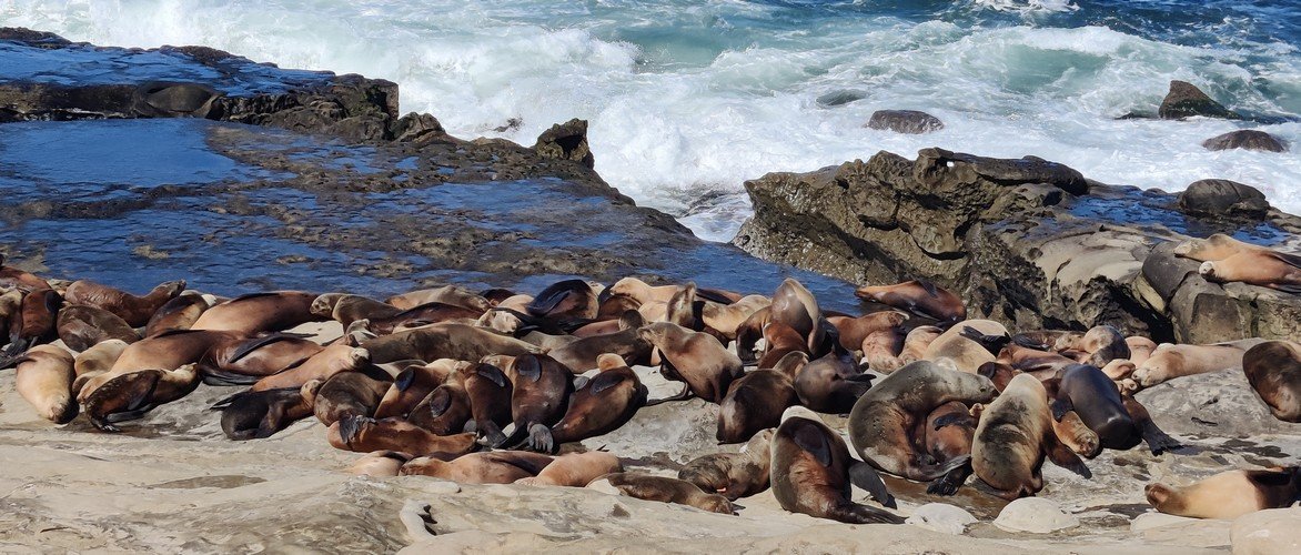 If boats aren’t your thing, La Jolla is about a 20 minute drive north of downtown San Diego. At this time of year, the resident sea lions and seals have pups. Because of this, the beaches are closed to allow the animals some peace and quiet. Unfortunately, people still climb over barriers and approach these animals for a selfie. It is very important to stay at least 50 feet from marine mammals, so please enjoy them from afar and bring binoculars. Babies can be crushed if animals are scared into the water. In addition, sea lions and seals can spend up to half of their time on land so it is perfectly normal for them to dry out while on land.