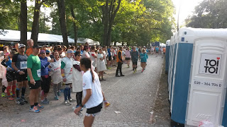 Course and bogs: The course takes you all over Berlin and it known for being fast and flat (hence all the world record-breaking times). We didn’t see as many tourist sites along the route as I thought we would (based on what was highlighted on the course map), but there were bands along the way for entertainment.