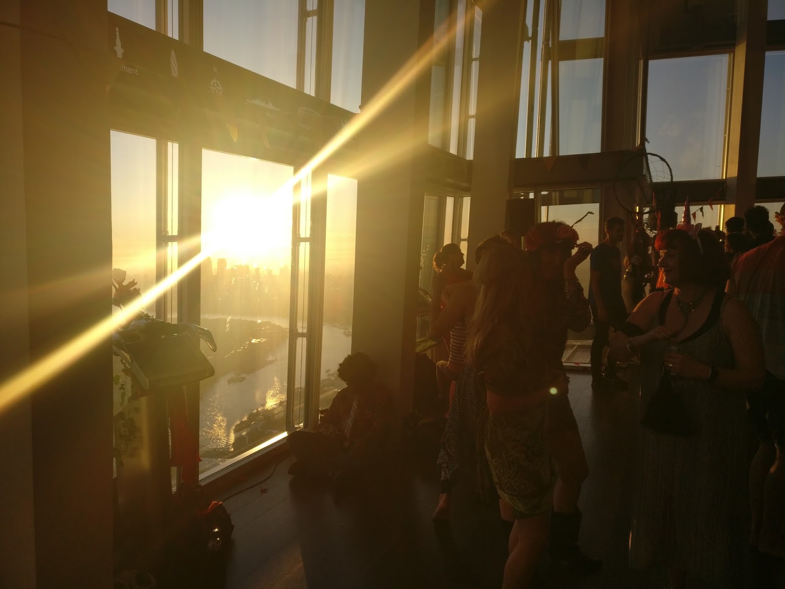 The dance floor facing east was packed every time I did a lap of the floor. The weather that day was perfect for our bird’s eye view over the city. You could see very far, and even observe fog rolling steaming up on the river. At the top of the Shard, the bright sunshine was a natural way to light the dance floor and build up your positive energy for the day. We could not have been any luckier!