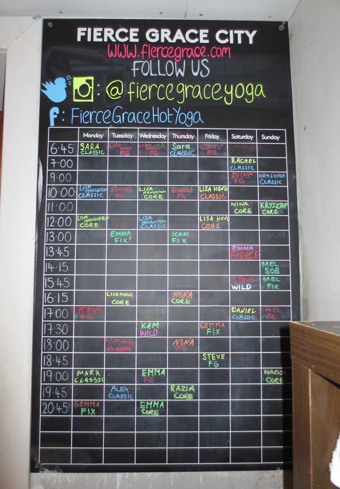 Fierce Grace yoga is perfect for those who enjoy hot yoga (obviously) and those looking to get leaner and stronger. It would also be good for people training for events in hotter climates, such as Marathon de Sables. They are also very reasonable in price/class, considering the length of the classes. I would recommend bringing your own mat and at least two towels (one for class and one for a shower) although you are able to rent both at the studio. Also, there are lockers in the studio for your valuable but the womens’ changing room only has shelves and coat hooks.