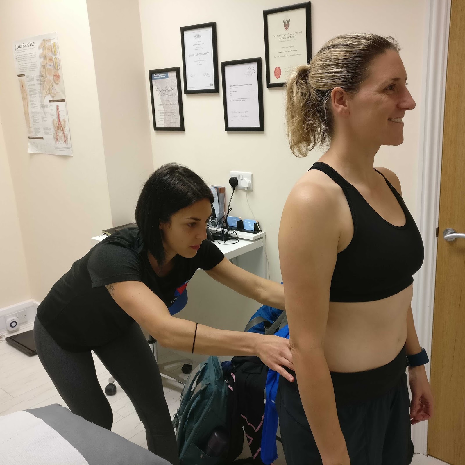 For my appointment, I met with Sonia at the clinic.  We started off with a postural and range of motion assessment.  She looked at my alignment while standing still and while performing squats.  This gave Sonia an idea of how my body may or may not need adjustment.  She noticed that my right shoulder was higher then the left, which I thought might be due to wearing my purse strap across my chest and on my right shoulder.