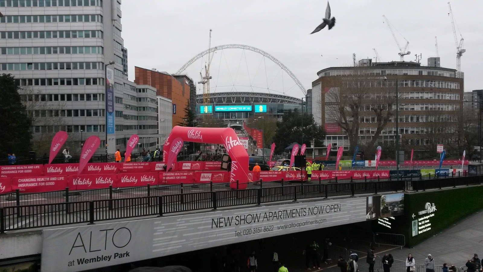 I think most people found the start line in 2015 challenging to get to because this year the race started and ended in Wembley Stadium. I have moved house since, so it took me ages to get to the stadium (between disruptions and a super early start). Once I got there, I saw a few friendly faces (Miss Wheezy and Lauren) and dropped my stuff off in the media area. It was a pain to get to the room as it was deep in the stadium but it was interesting to walk through central command where all the organizer’s and safety services were monitoring the race.