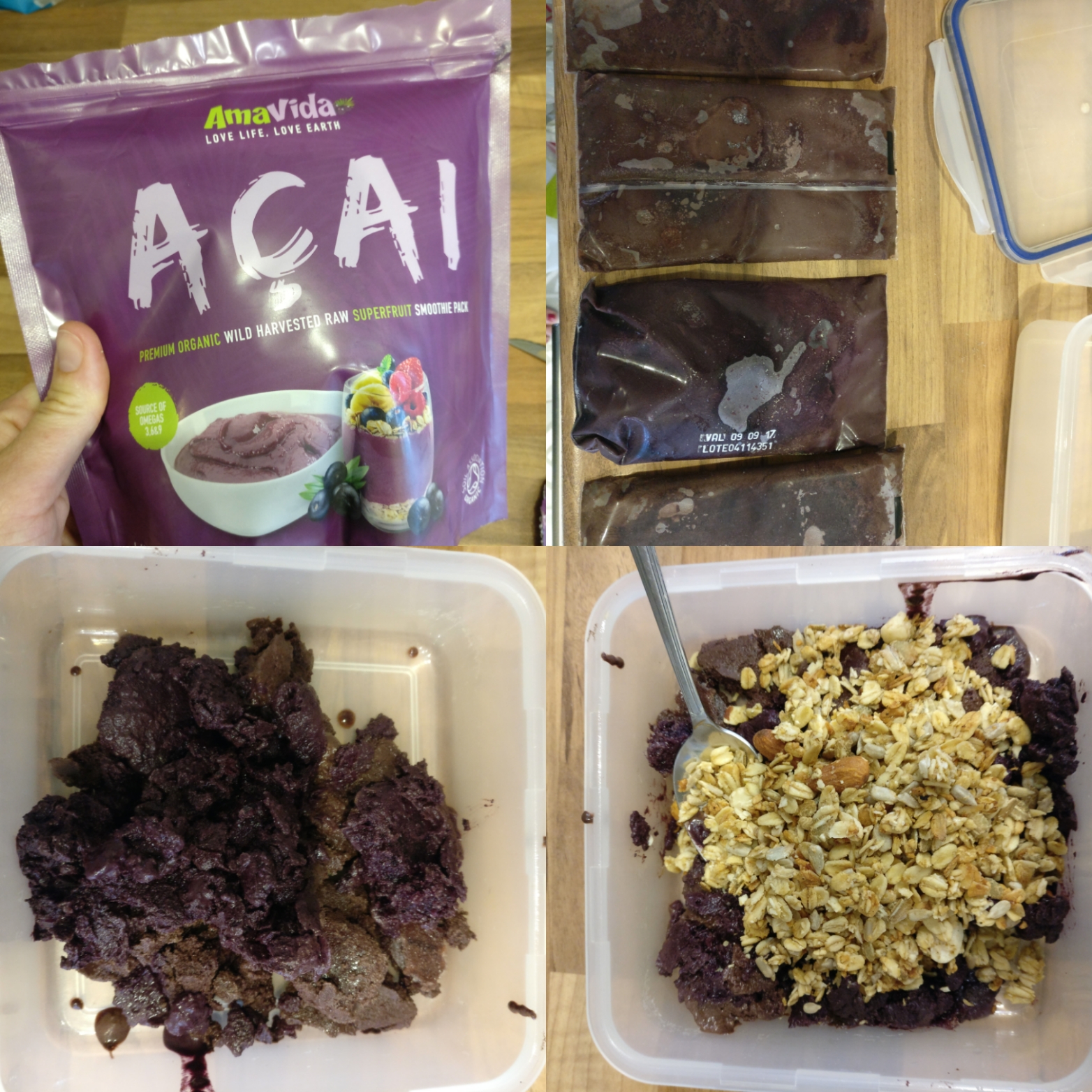 Ama-Vida has brought acai berries and Pitaya (dragon fruit) to your freezer. These smoothie pouches can be keep in freezer for whenever you need a treat. Simply defrost under hot water or overnight in the fridge as needed (just don’t keep in the fridge longer than one day because it turns to liquid). The flavours are not naturally sweet, so add fresh or frozen fruit, granola, nuts or seeds to pimp your bowl to your taste. It is a great product to keep at work for breakfast el desko or as an afternoon snack on a hot day.