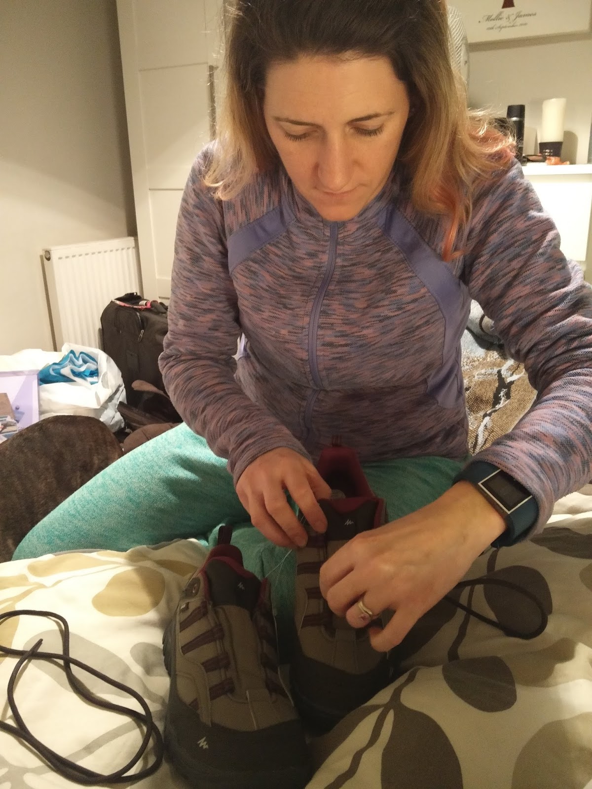 The boots were trickier as I had to overcome my need for perfect alignment and flat laces and focus on getting the task done.  It took me 1 minute 48 seconds to get both boots laced up. I changed my stratgey for the second shoe but I don’t think it made a difference in my final time.  If you don’t have hiking boots, you can use any pair of shoes the laces in your closet. Hopefully they don’t smell too bad!