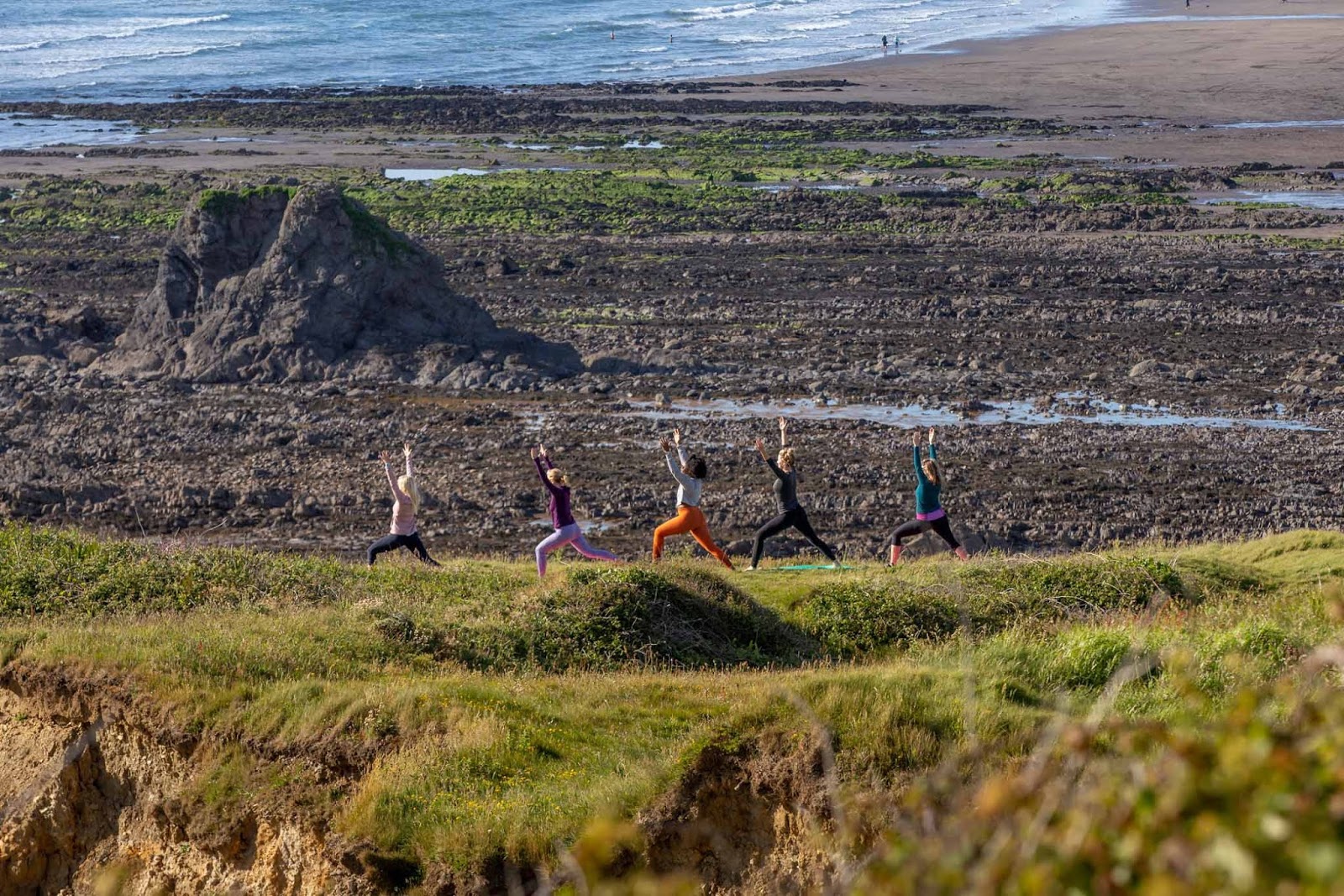 As I mentioned earlier, we had yoga indoors on the first two days.  On Sunday, there was enough sunshine to have one practice in the garden and the second on a clifftop overlooking the sea.  There are too many amazing photos (taken by Tommy Hatwell, Plymouth-based commercial and portrait photographer) of both sessions to share here but I have included a few of my favorites.  Yoga was taught by the talented Anna Young who is also one of the Freewave Surf Academy instructors.  She has a real calming presence and fantastic choice of music.  She also helped with breakfast in the mornings and tidied up after us (thank you Anna!).