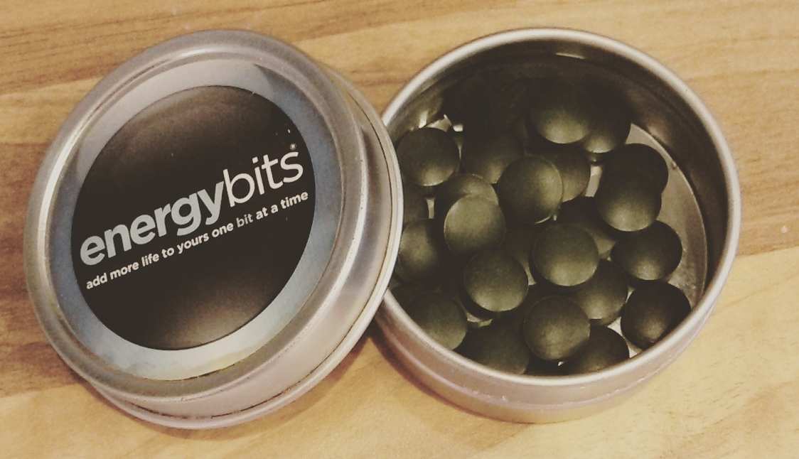 Energy Bits were the first thing I tried. I was completing my 2nd attempt at Whole30 and searching for a product that met the rules. These ‘bits’ are 100% spirulina algae and are vegan, paleo, caffeine-free, soy-free and gluten-free.  Spirulina is the richest source of protein in the world at 64%, and rich in vitamins, minerals, and electrolytes too. You swallow 30 before or during physical activity, and away you go!   I definitely notice my energy feels a bit off when I don’t take them before my longer runs.  As they only contain the algae, my stomach doesn’t have any problem digesting them on short or long runs.  I will take them before a fasted run to make sure I don’t bonk.